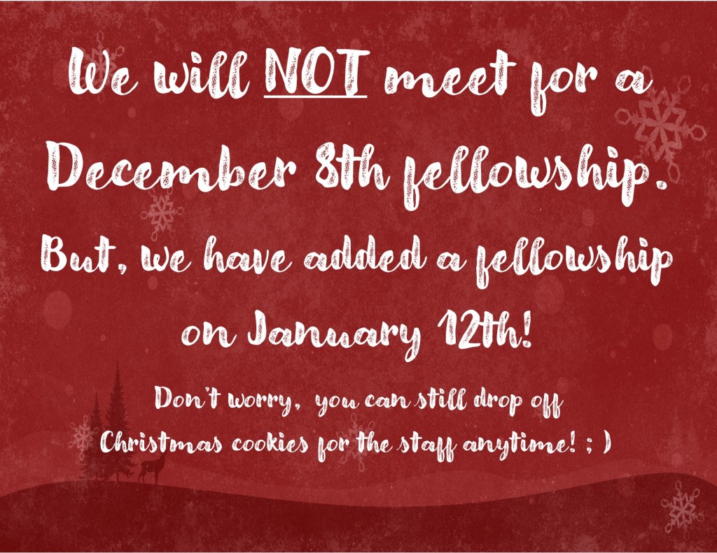 11/11  6:30-7:00 Fellowship, 7:00-8:00 Topic: CBCCA Yearbook