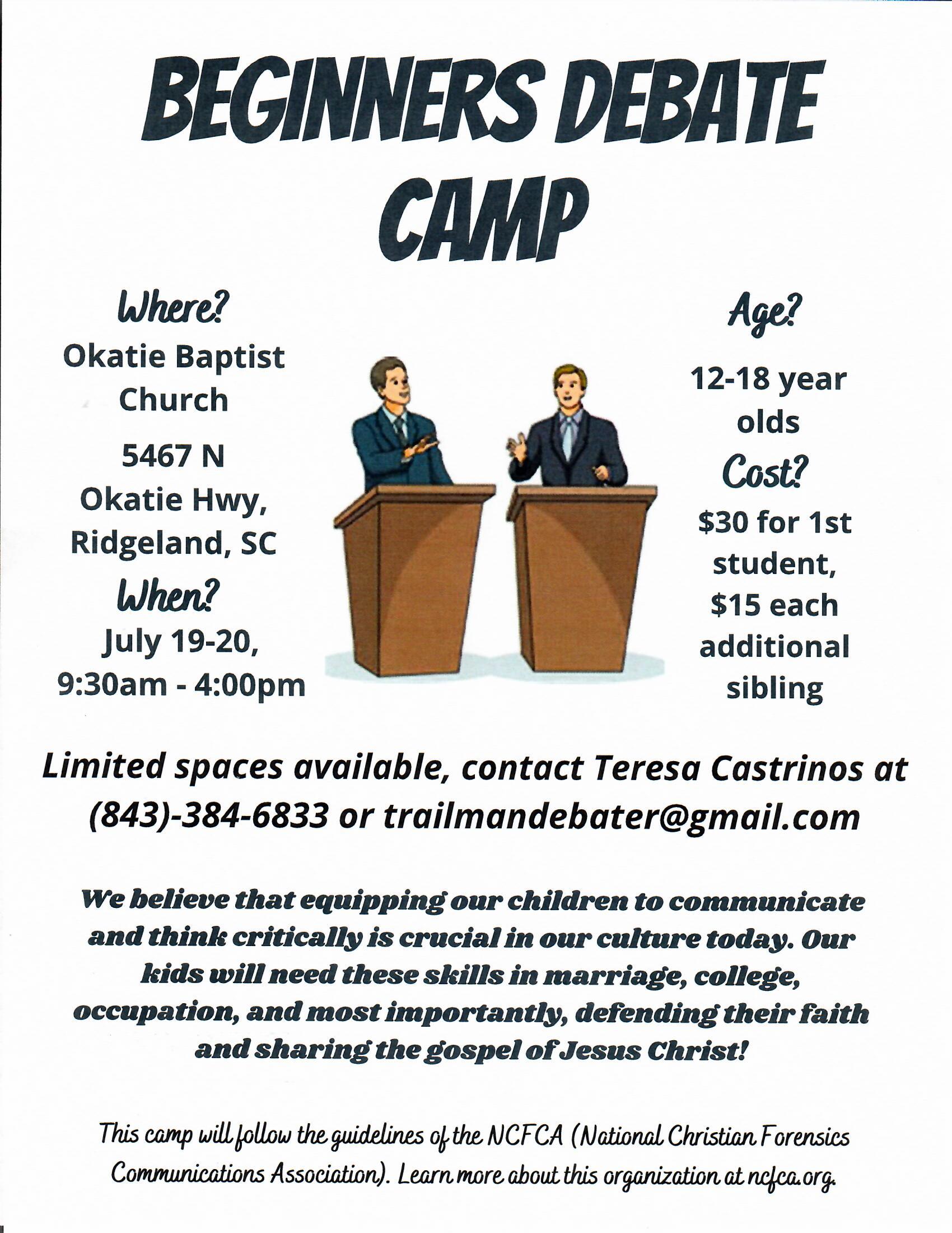 10/14 6:30-7:00 Fellowship, 7:00-8:00 Topic: Trail Life, American Heritage Girls and the Debate Club will present.