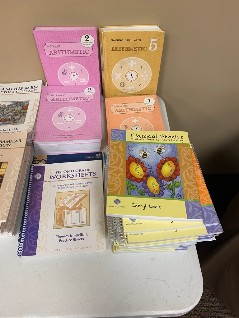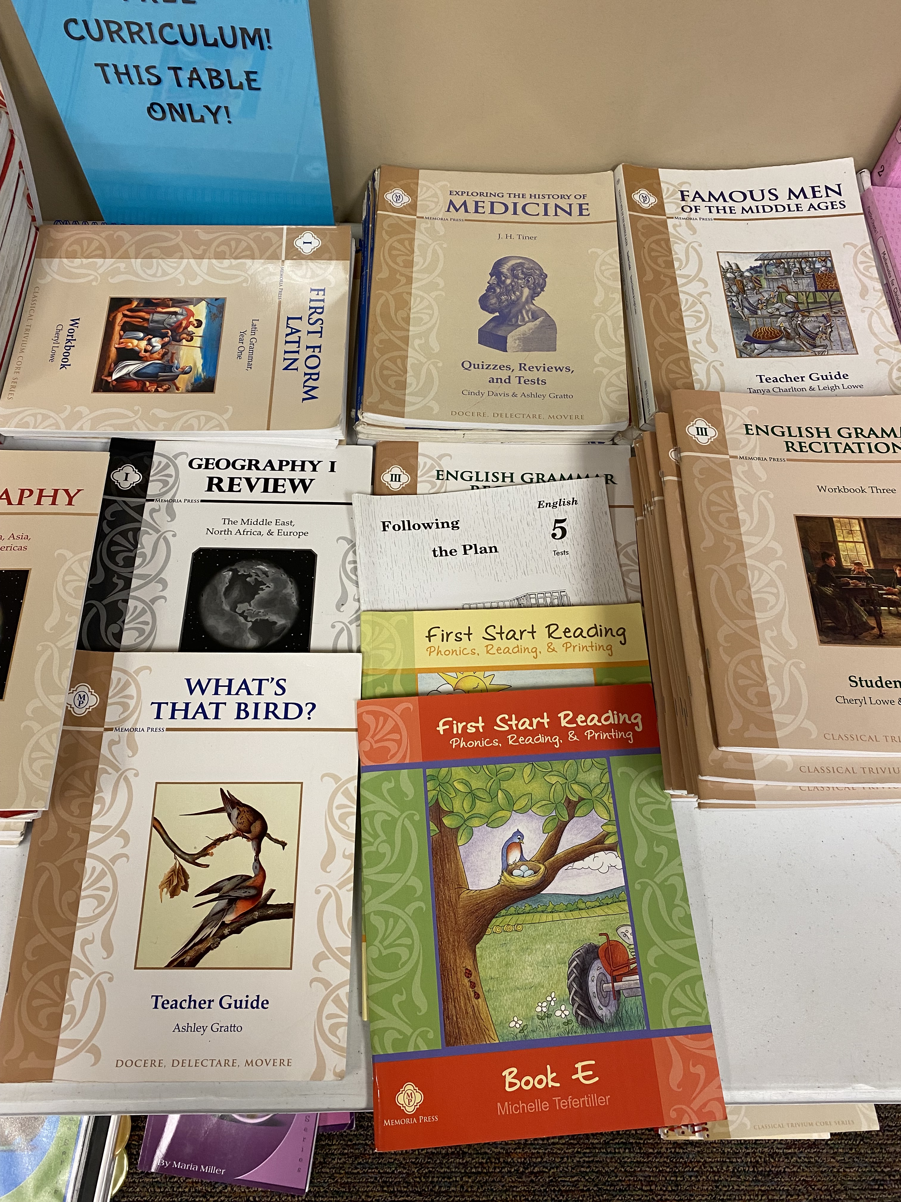 Holy Trinity donated some of their extra books; most are like new from Memoria Press….first come first serve…they are located in the CBC Library (next to the World Mission Cafe.) Please do not call the office to ask “what’s left” as we are not able to help with that. The library is open during office hours, on Wednesday evening and Sunday morning.