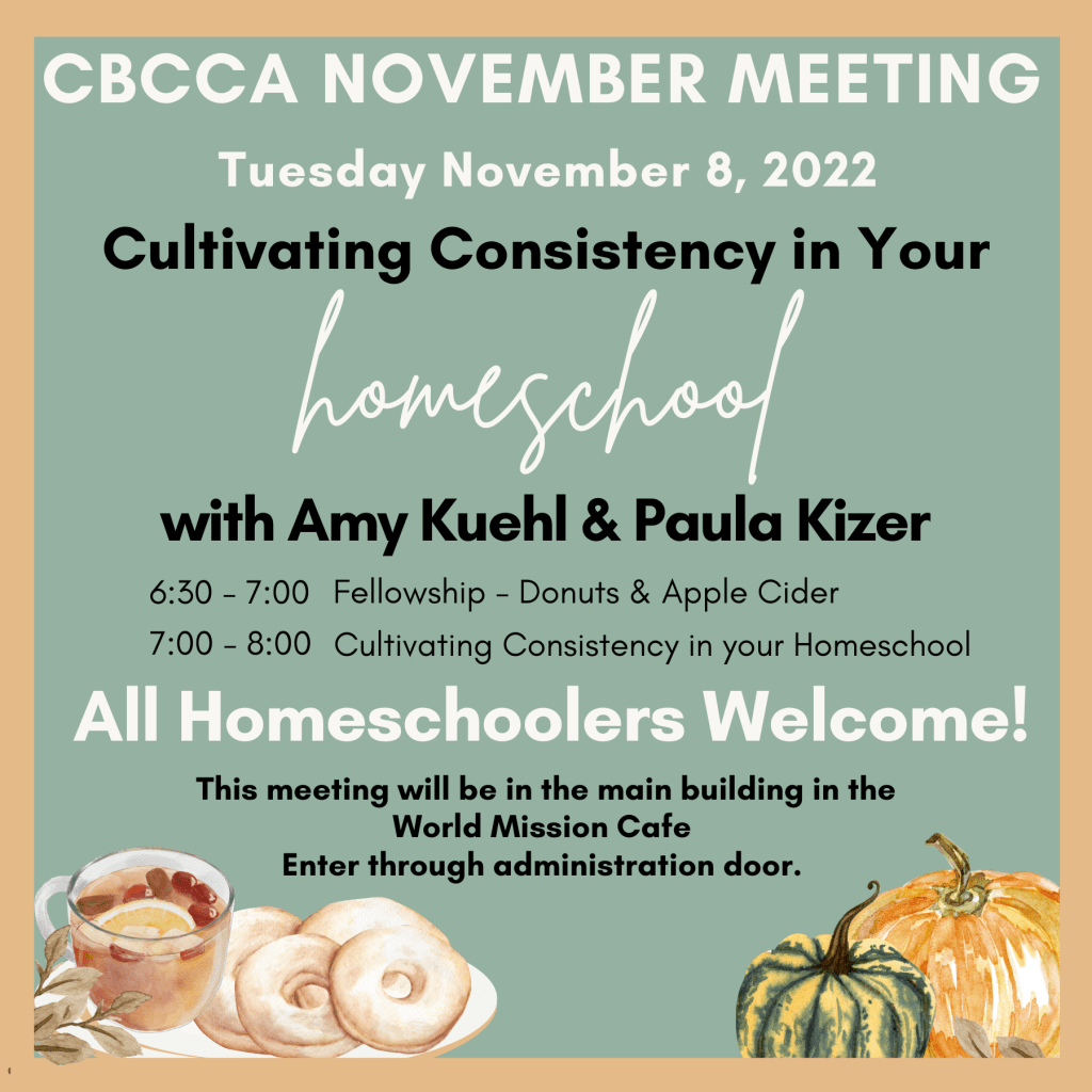 11/11  6:30-7:00 Fellowship, 7:00-8:00 Topic: CBCCA Yearbook