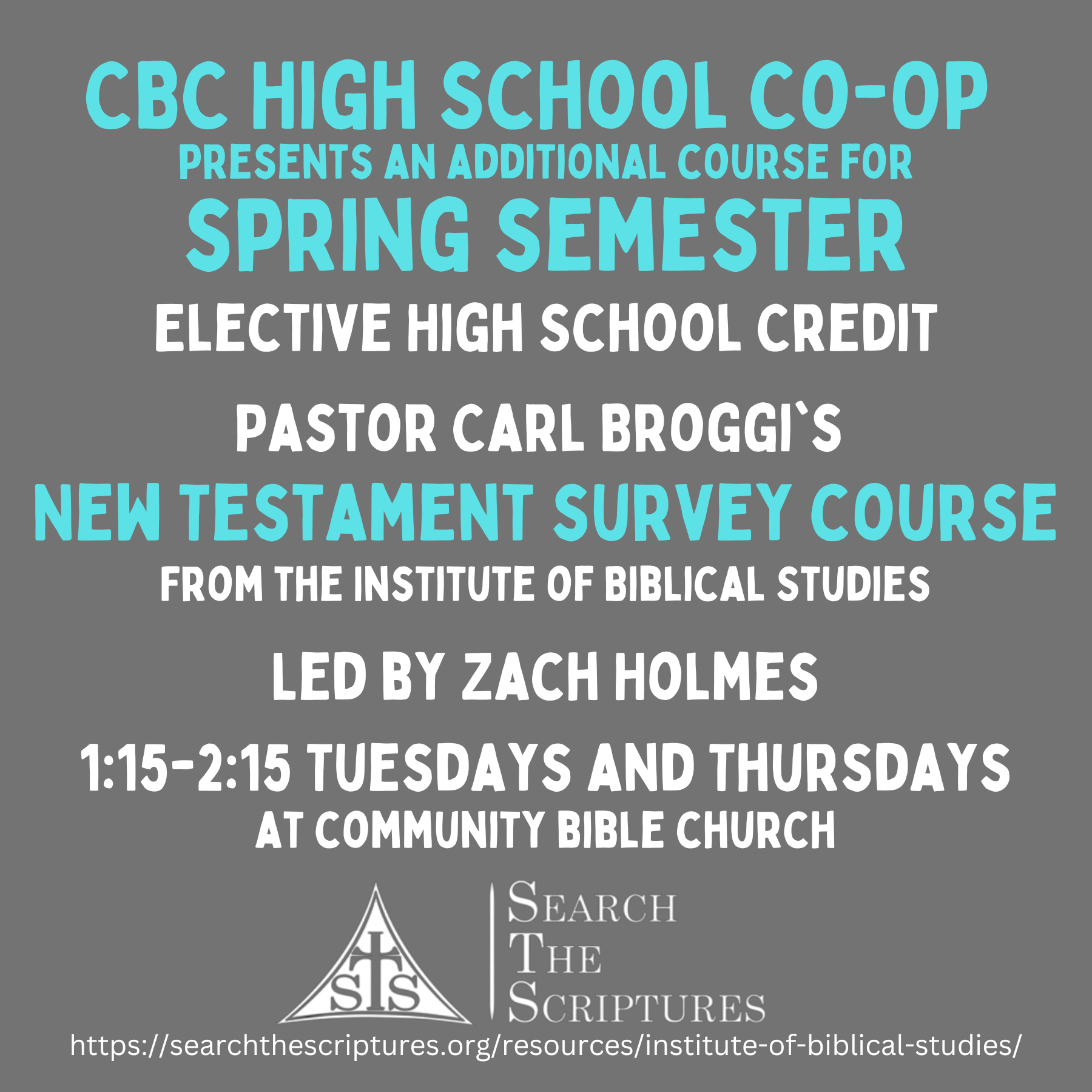 Contact Evelyn Owens if interested at cbcevelyn@gmail.com. Class starts Tuesday January 10th!