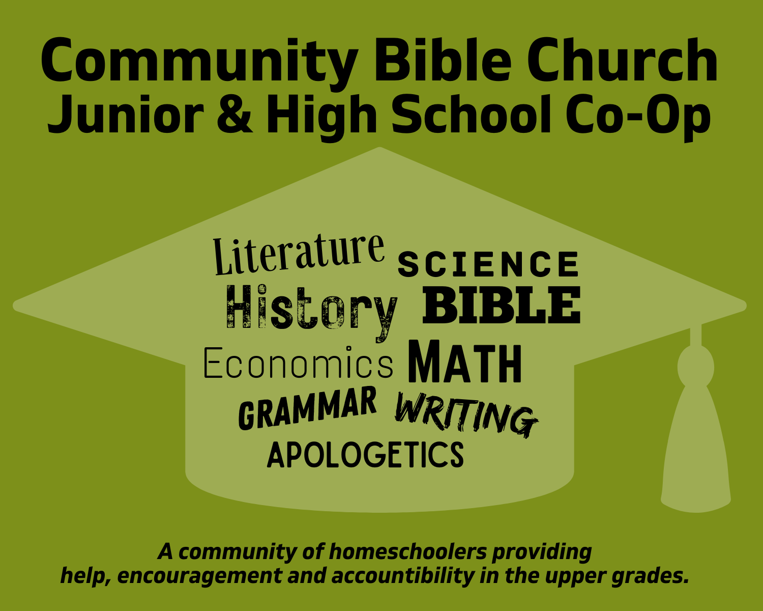 If you would like to learn more about the CBC Junior and High School Co-Op (7th-12th Grade), please join us tonight at 6:30 in the Fellowship Hall at Community Bible Church.