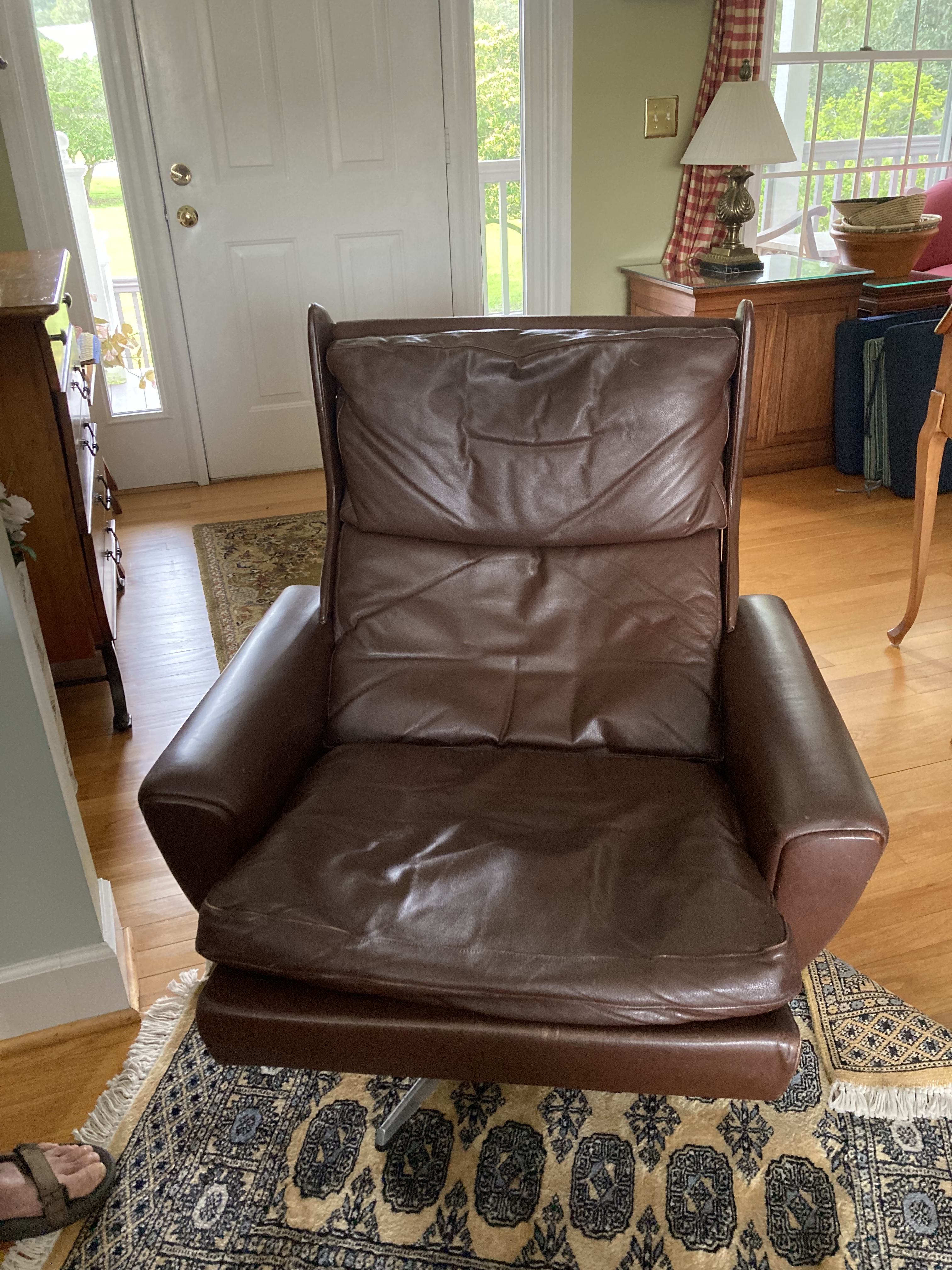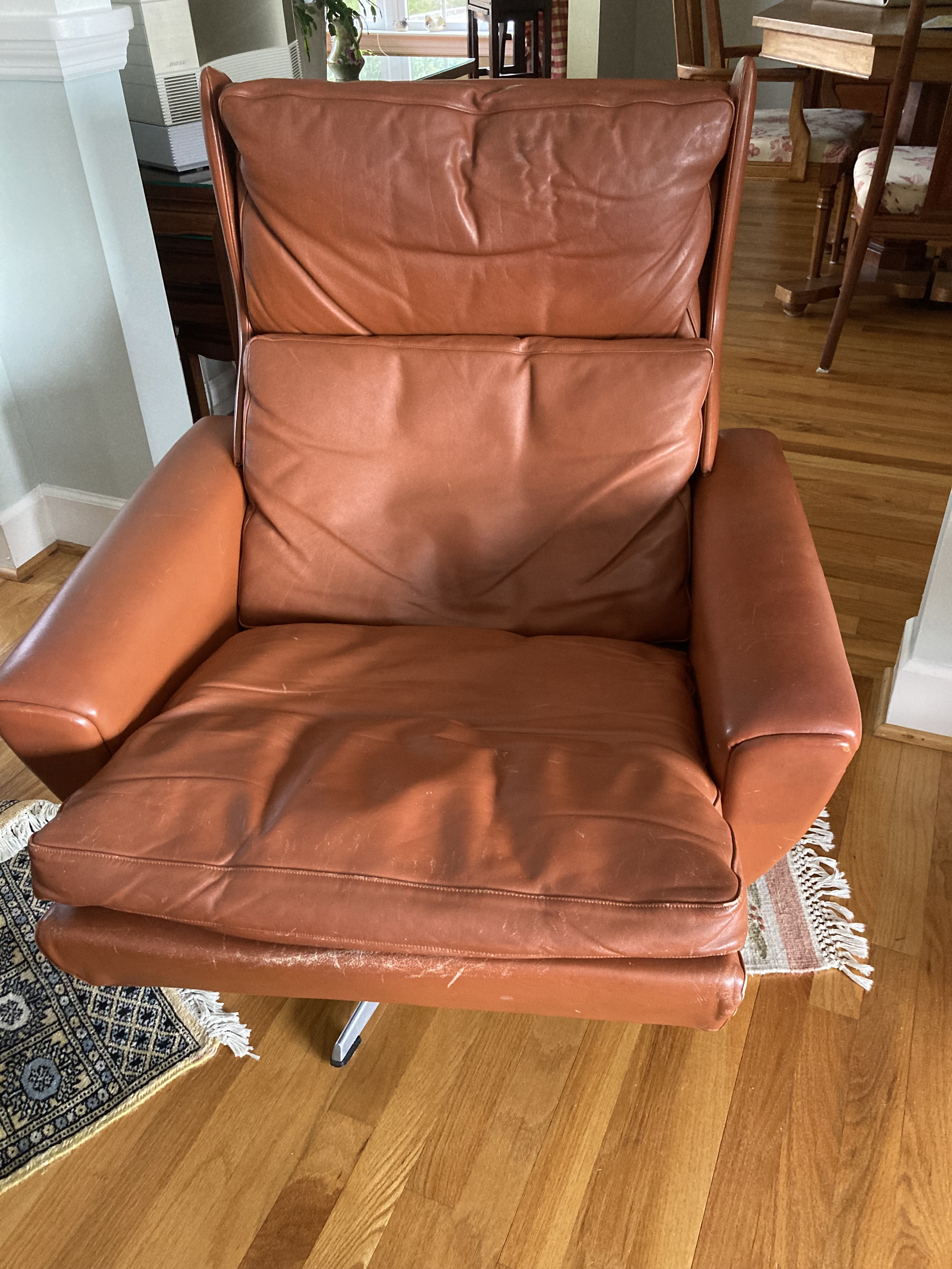 All leather, on a chrome base. Depth: 38″ Width 32″ Height 38″. TEXT Sherry Dryg ASAP if interested. 843-263-0161