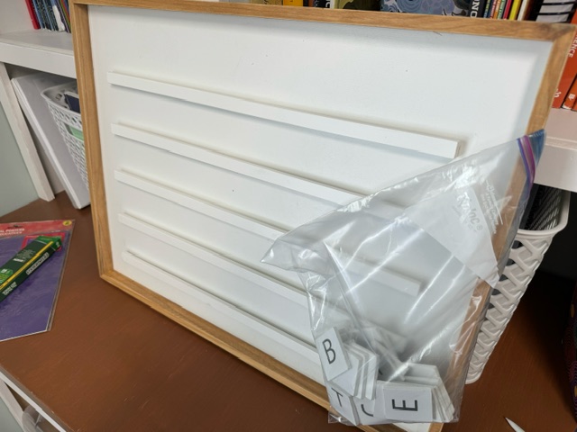 Letter board- $8 (missing some letters, can paint on the backs!)IKEA spice racks— $5 each or all 5 for $20