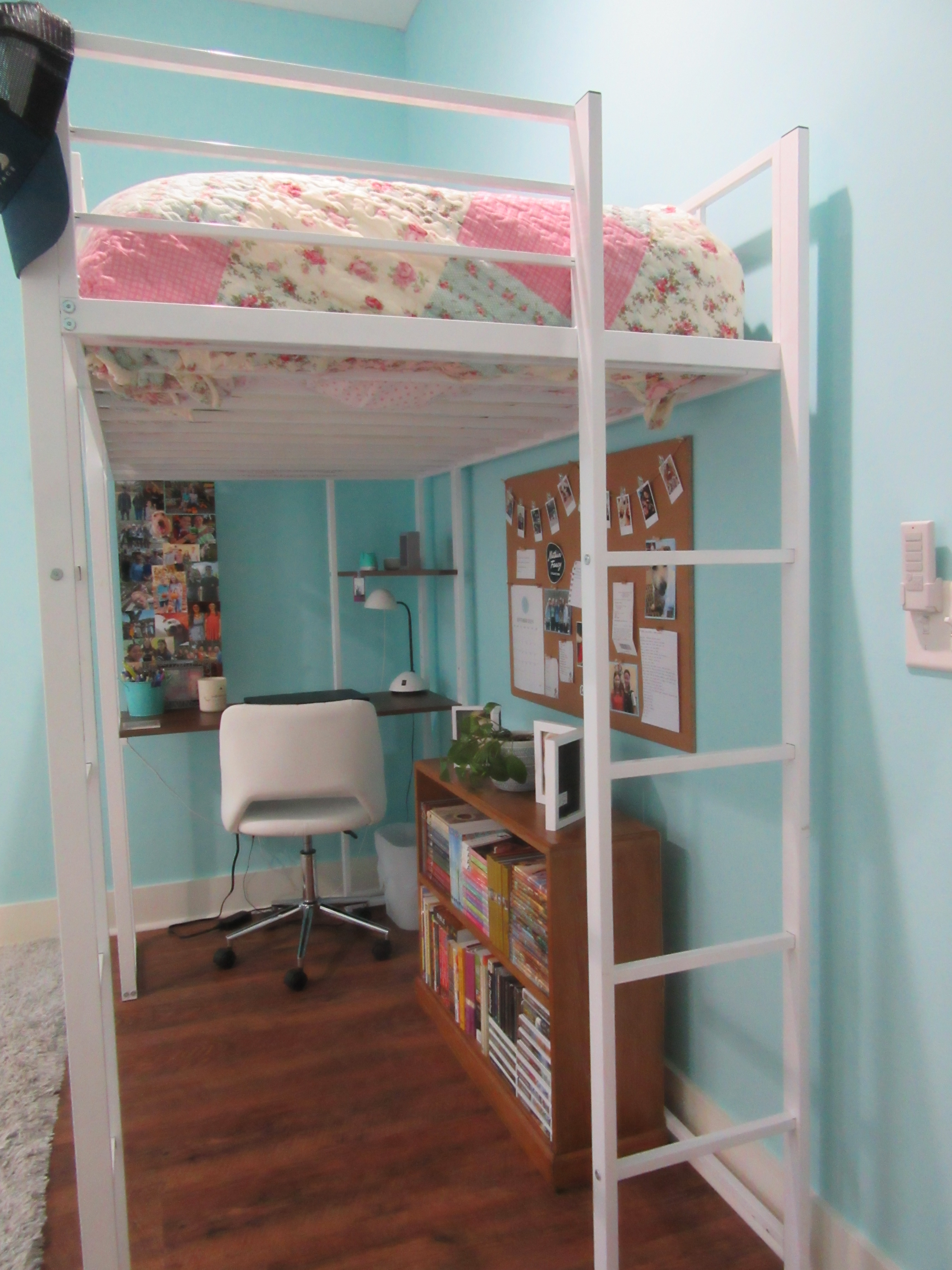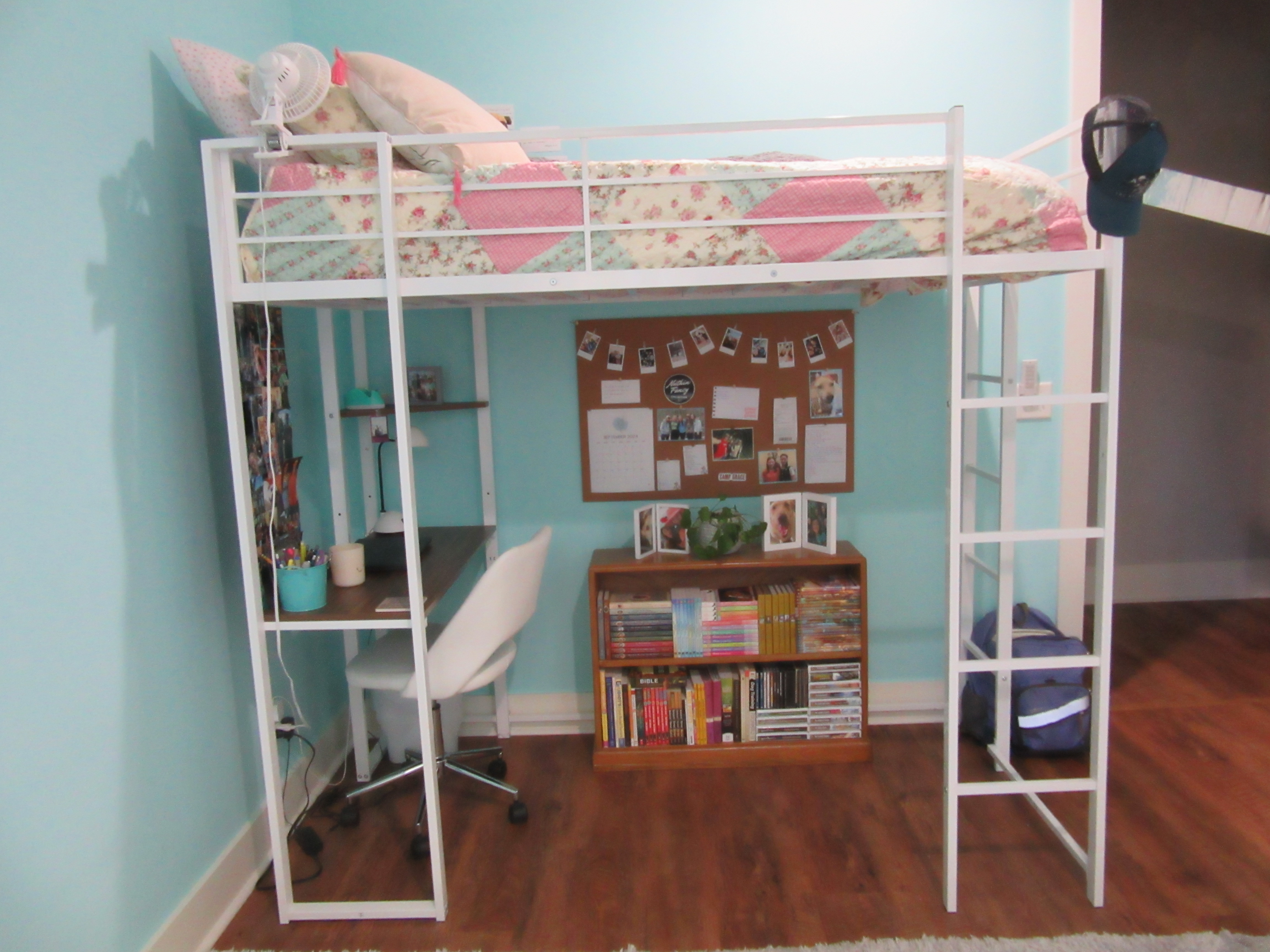 Selling metal loft with desk. Mattress and chair NOT included. $75.00.Excellent condition. jennbales@yahoo.com