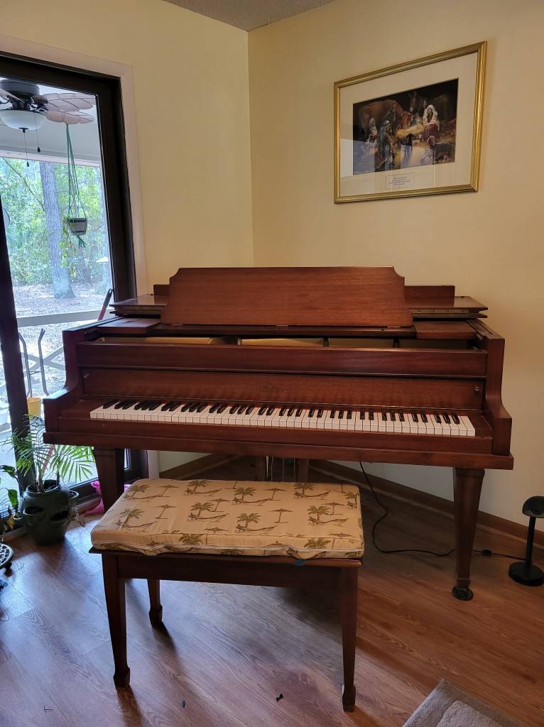 The piano is over 100 years old. Refurbished at 75 years. The aquarium comes with all the equipment. It is about 30 years old.