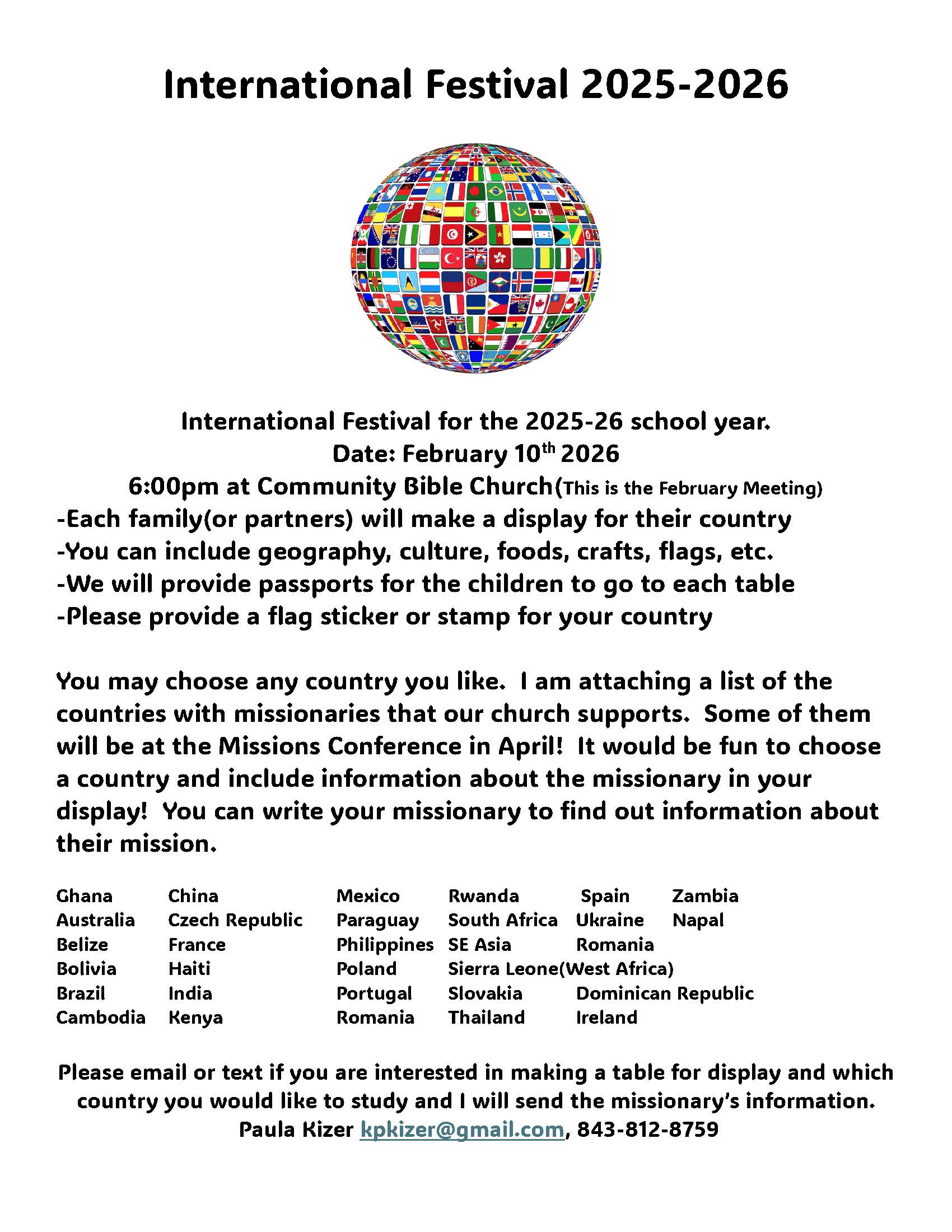 10/14 6:30-7:00 Fellowship, 7:00-8:00 Topic: Trail Life, American Heritage Girls and the Debate Club will present.