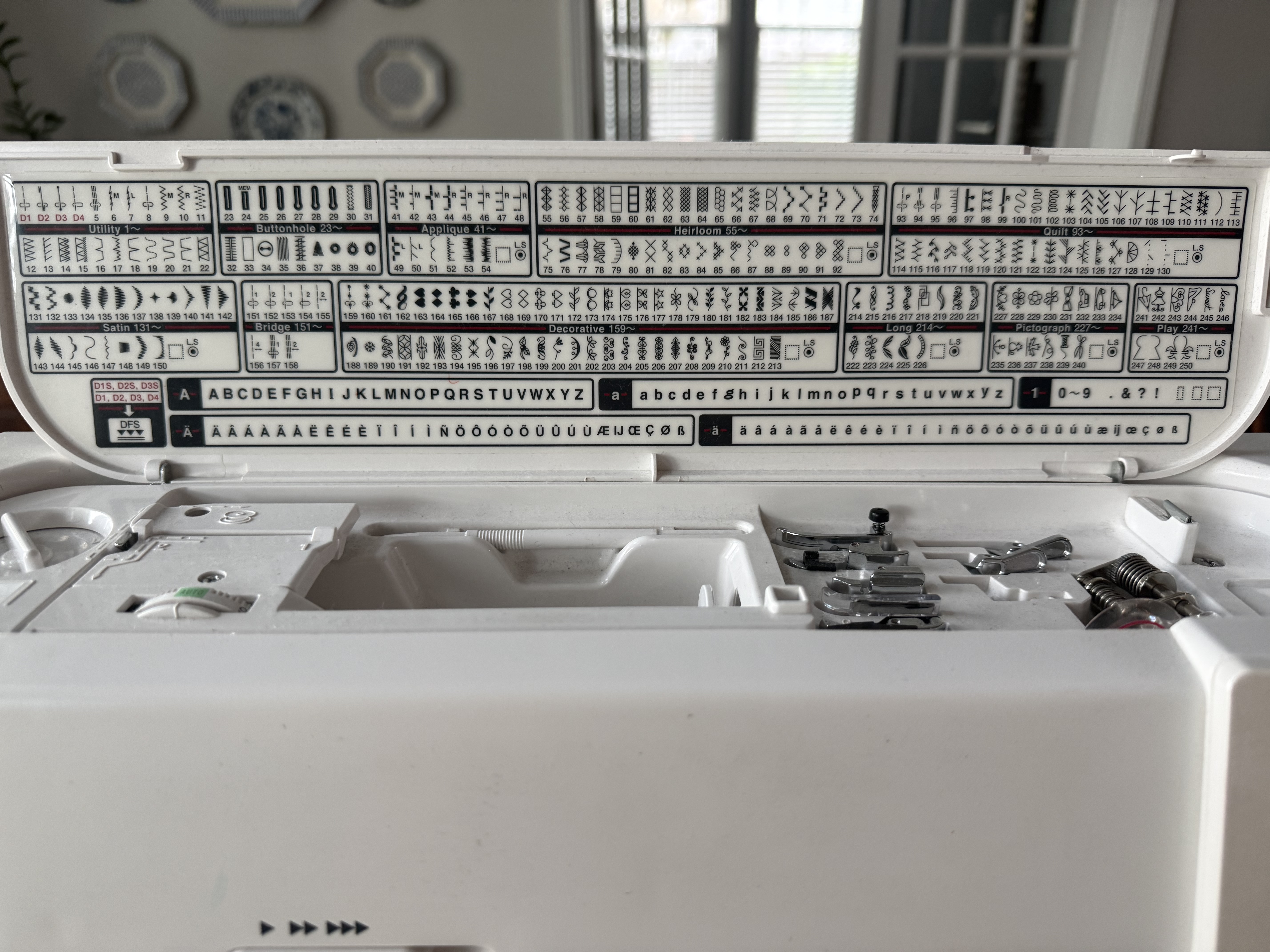 She has an eleven inch throat, y’all! I’ve quilted very large quilts on her. Great machine with all of her parts. I’ve upgraded, and the salesperson recommended I sell her for $950, but she could use a professional cleaning, so I’m reflecting that in my price.