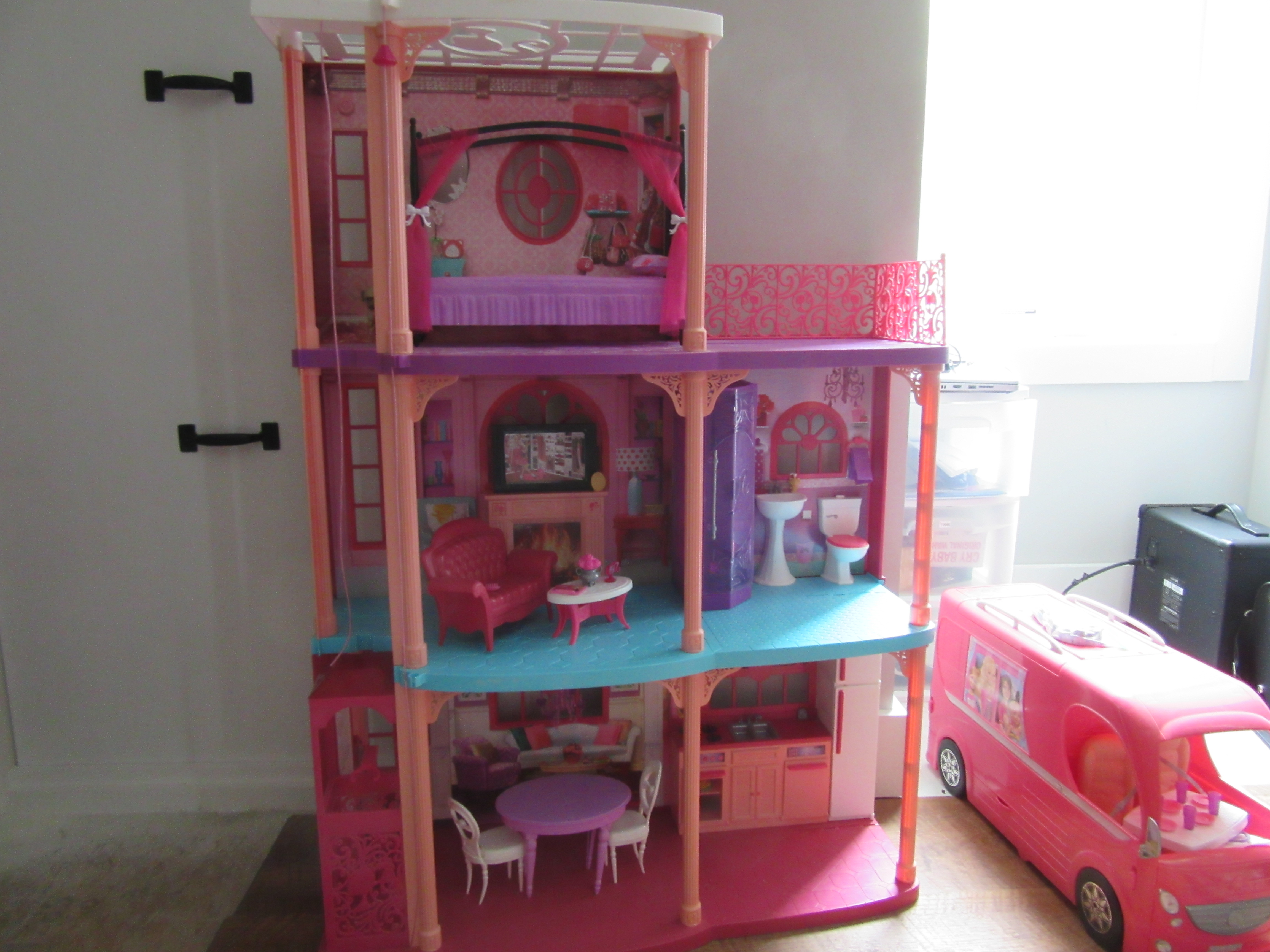 For sale- Barbie Dream House with all accessories. Pet free home. Elevator can be fixed by a skilled dad.