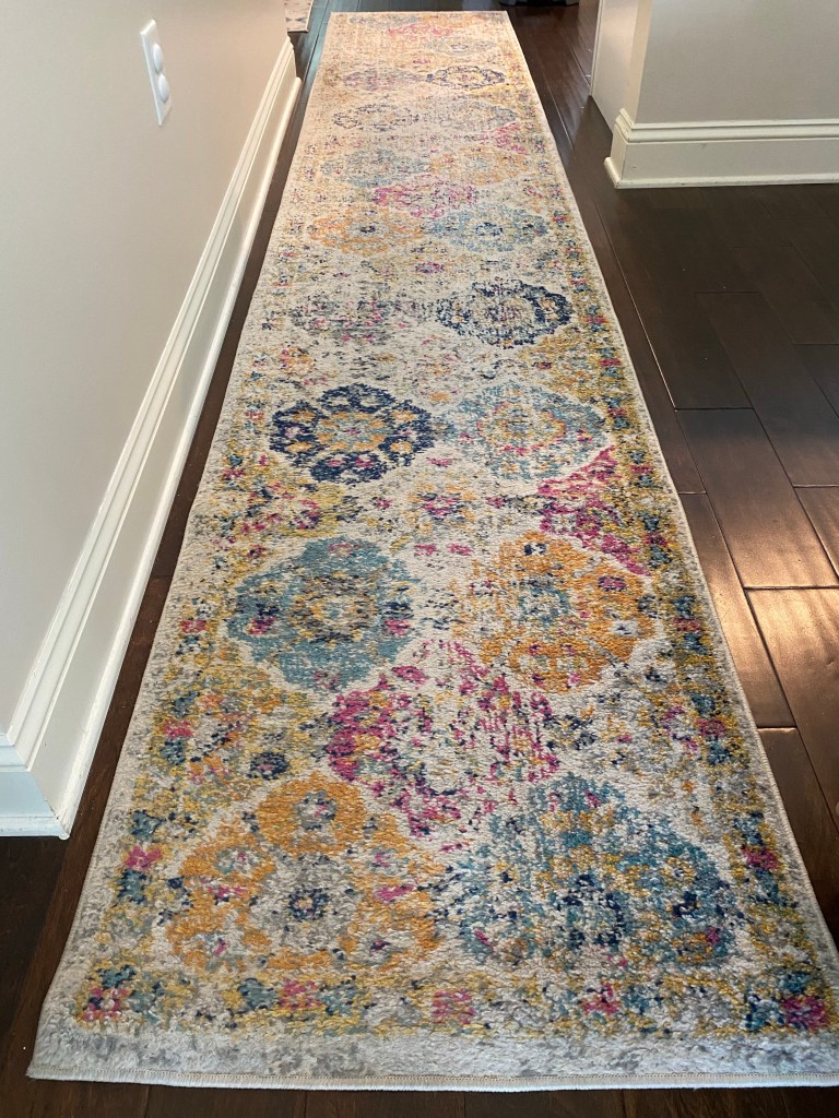 Downsized so more items need to go! Pottery Barn galvanized tiered tray. Outside dimensions: 9-1/2 x 12 x 16 1/2 $20.00. Safavieh Hudson white/slate blue shag rug. 5.1’ x 7. 6’. Note: white….needs cleaning! $50.00. Text Claudia 843-812-2864.